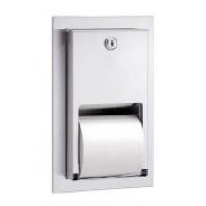 Toilet Tissue Dispenser Lockable Recessed Dual Roll Size: 193mm W x 314mm H x 135mm D Colour: Satin Material: Stainless Steel