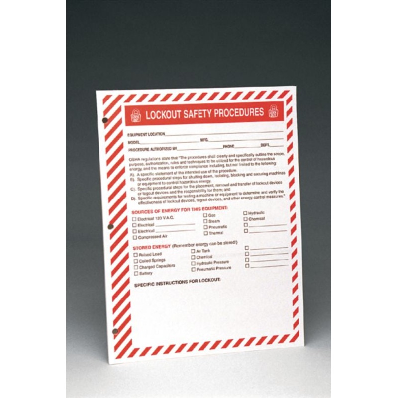 Lockout Safety Procedure Forms, 25/Package