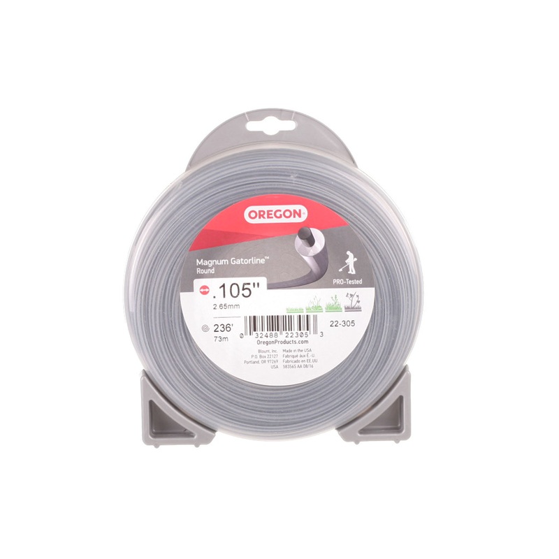 Oregon 22-305 Heavy-Duty Magnum Gatorline Round Line .105" Dia 1lb spool # 22-305 High cutting efficiency Magnum Gatorline allows you to get cleaner, straighter cuts with less effort than traditional trimmer line Durable High-strength inner core resists br