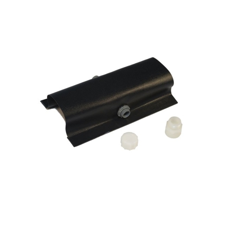 Make-A-Berm drain plug is used to drain innocuous fluids, such as rain or snowmelt. The drain plug is made of PVC coated fabric and can be easily added to any part of the berm configuration. The plug should be added in the lowest point of the containment area. Do not drive or rollover the draining plug section. The weight of vehicles or hand trucks can damage the PVC tubing.