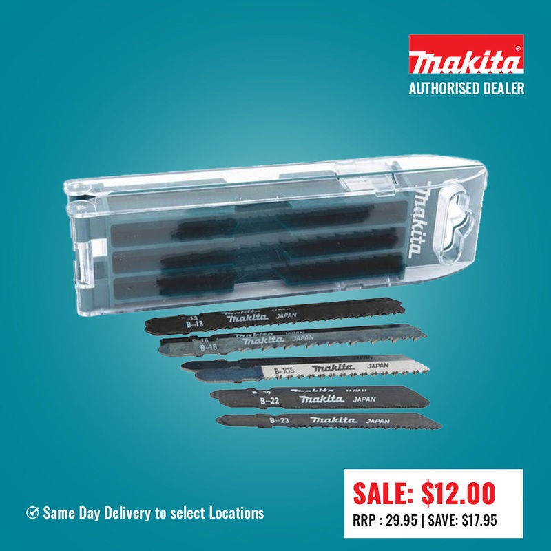 Ideal for cutting applications in woodIdeal for cutting applications in metalIncludes 5 different types of jigsaws bladesThe Makita 10 piece Jigsaw Blade Combination Set is used for a wide range of cutting applications in wood and metal.Includes:2 x B23 14