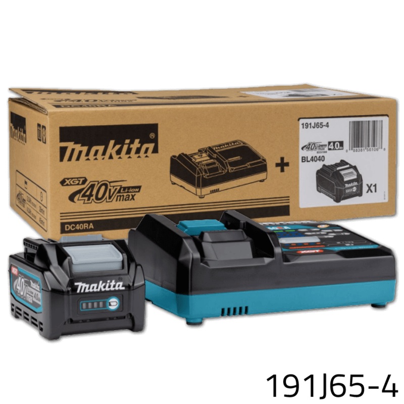 FEATURESA starter power source set in the 40Vmax range from Makita.It contains the DC40RA and 1 x BL4040 40V 4.0Ah batteries.40V XGT SeriesSPECIFICATIONS:Part No.191J65-4Model No.START KITPackagingCarton BoxBatteryBL4040Ah4.0Quantity1ChargerDC40RA