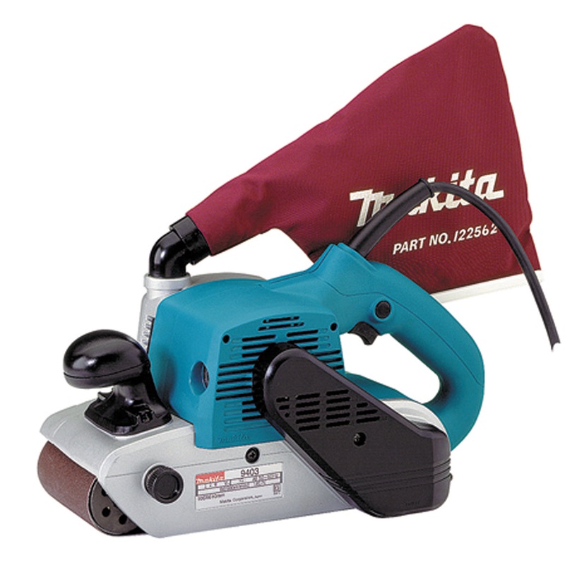 The 9403 belt sander has a powerful 11 AMP motor for high-production use, yet at 84 dB is the quietest model in its class. The sander is engineered with Makita’s labyrinth construction to seal the motor and bearings from contamination. Convenience features include a large front grip for operator comfort, and a power cord located on the upper portion of the handle. The dust bag swivels 360 for more convenient operation.
