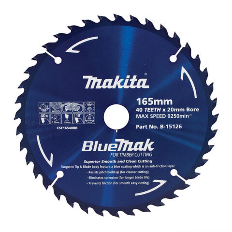 Makita BLUEMAK TCT SAW BLADE 165mm x 20/16mm x 40T B-15126 is now available at Power Tool Specialists your trusted Makita dealer in Carlton, VIC. Ideal for tradies and serious DIYers, this tool delivers top-tier performance for demanding applications. Shop
