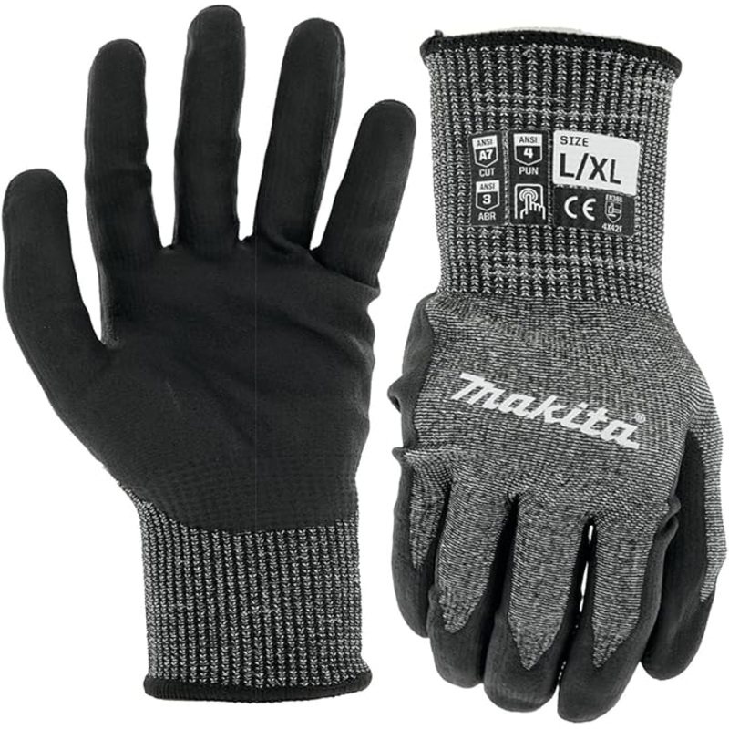 Features:Advanced 10-gauge FitKnit material for increased cut protectionANSI rated cut level A7ANSI rated puncture level 4Advanced nitrile coated palm for better gripAdvanced FitKnit material for optimal flexibility and snug fitDetails:Makita tools and acc