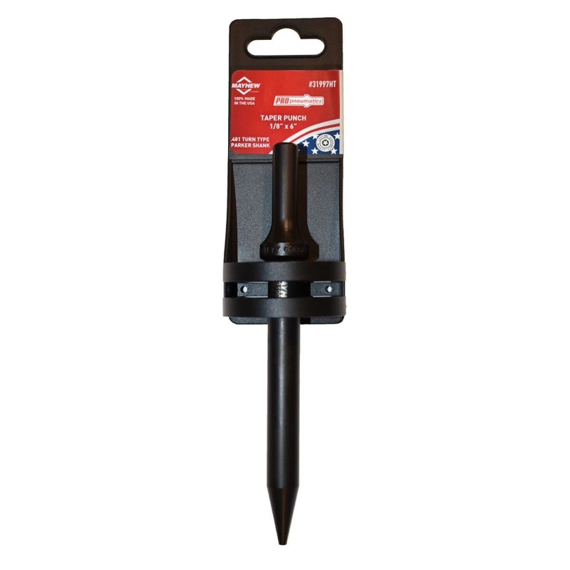 Mayhew Steel Products, Inc. 31997HT Pneumatic Taper Punch 1/8" x 6", Hang TagKey Features:Standard .401 turn type Parker shanks for air gunsFully hardened and tempered shock resistant tool steelBlack Oxide finish to prevent corrosionMade in the USALifetime