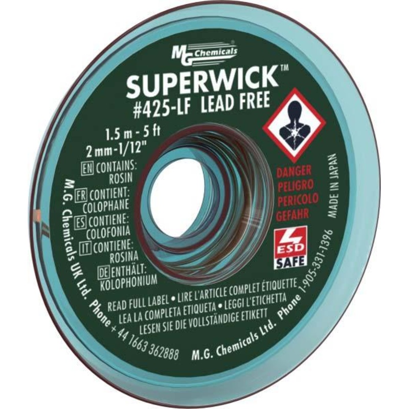 Lead Free Super Wick is a tightly woven, oxide-free copper braid coated with no clean flux. Its high purity and tight weave make it fast-wicking, quickly removing solder and minimizing dwell time.