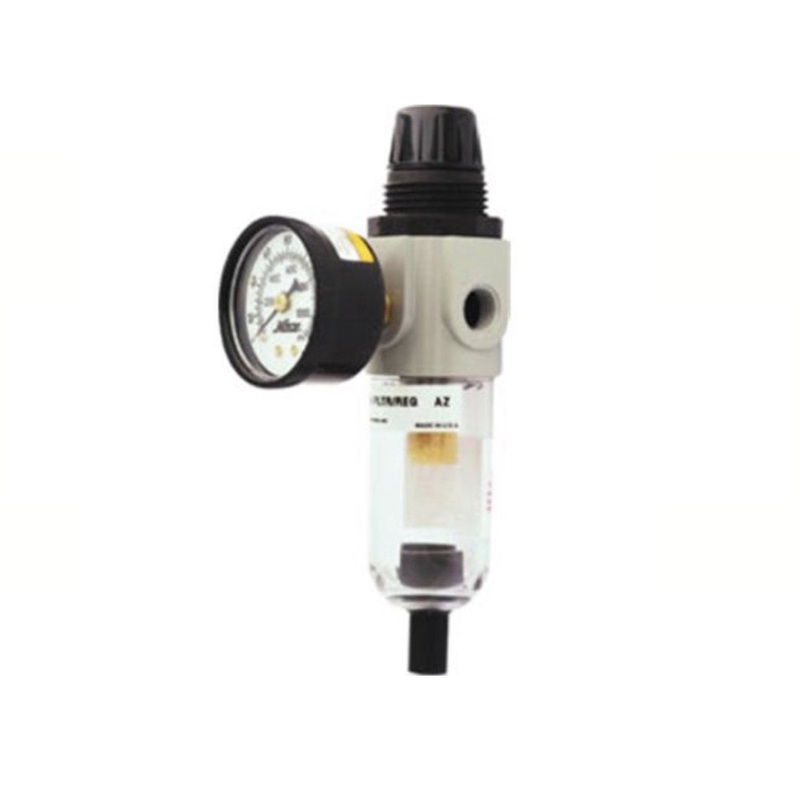 " NPT filter/regulator piggyback. Ideal for use in confined areas and low flow applications.Relieving type regulator adjusts for 0-125 PSI 20 micron screw in minifilter.Pre-assemble with 0-160 PSI gage.