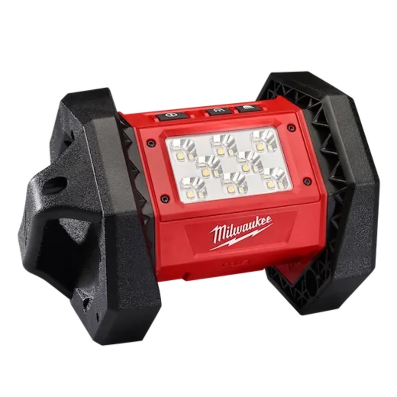 The Milwaukee 2361-20 M18 ROVER Flood Light delivers up to 30% brighter light output than 250-watt halogen floodlights. The LED floodlight illuminates large workspaces with 8 high-quality LEDs that provide 1,500 lumens of TRUEVIEW High Definition Output. This floodlight delivers up to 10 hours of run-time on a single charge using an M18 REDLITHIUM XC5.0 battery. The cordless floodlight has an innovative roll cage design and a replaceable impact-resistant lens, that stands up to the toughest working conditions. This compact floodlight features an octagonal shape so it can be positioned and used at multiple angles, and the versatile design delivers hands-free options for a variety of applications. This floodlight has a limited lifetime LED warranty, LEDs never need to be replaced. MILWAUKEE ROVER Flood Lights are built to go anywhere and withstand anything