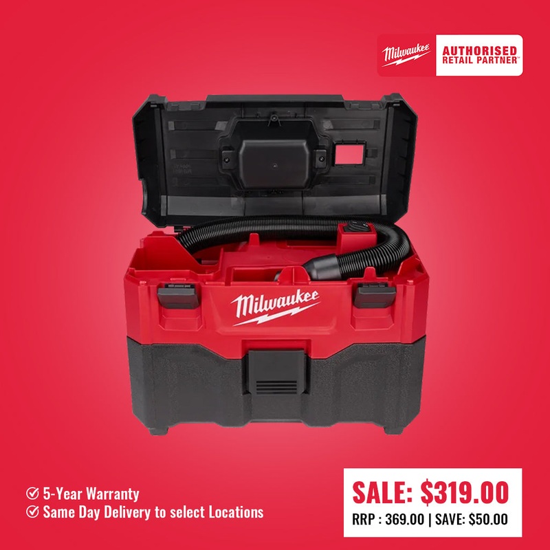 The M18 7.5L Wet/Dry Vacuum offers powerful suction for wet and dry applications. Compatible on all MILWAUKEE M18 REDLITHIUM-ION battery packs, the M18WDV-0 offers long continuous run time and high air power and suction to provide quick and easy removal of dust, debris and water. A HEPA filter delivers excellent fine dust collection for dry applications. The stackable toolbox design, on-board hose and accessory storage offer excellent portability and convenience, a built-in blower port allows the vacuum to double as a blower, and the 31.8mm inlet allows standard vacuum attachments to be fastened. It includes vacuum, filter, hose, a crevice tool, hose clip adapter and a wide nozzle.