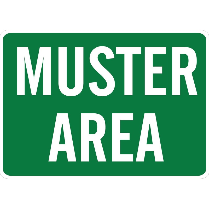 Muster Area Sign, Aluminum .040, Green/White, 10x14\