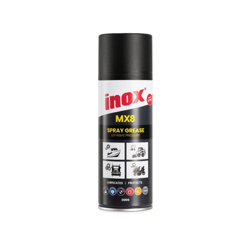 The extreme pressure and anti-wear properties of INOX MX8 grease gives long service life under high loading and shock loading conditions from very low to very high temperature environments. These special characters of shear stability, combined with the inclusion of effective rust, oxidation and corrosion inhibitors and tackiness adhesives, ensures this grease to perform in almost any application. INOX MX8 is a lithium complex grease, which means that it will hold together extremely well under high pressure and variable temperatures.