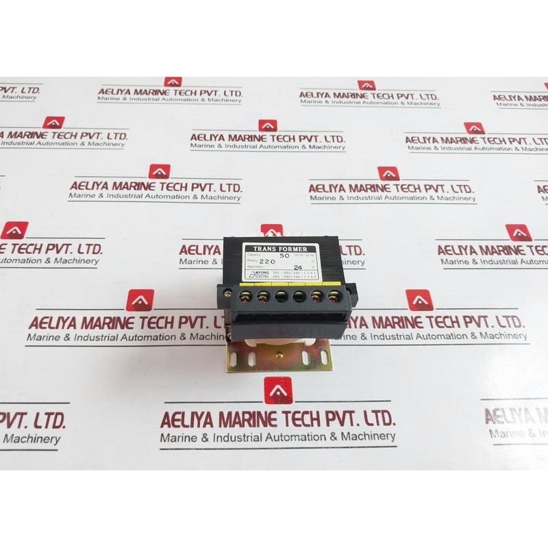Myong Electric Transformer 50Va 50/60Hz 220VMyong ElectricTransformerCapacity: 50Va 50/60HzPrimary: 220VSecondary: 24VWeight: 1.600 Kg