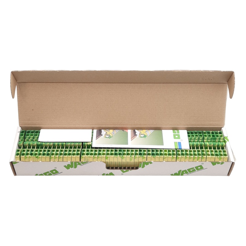 From our inventory we are selling a Lot of 50 Wago 281-907 Ground Terminal Blocks, 2-Conductor, 28-12AWG, DIN Rail. Specifications: