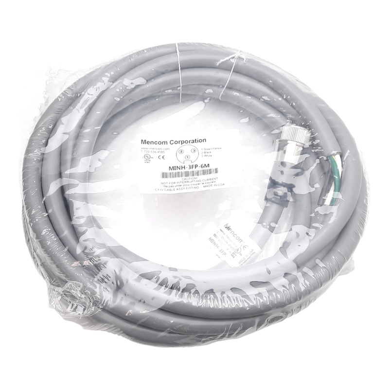 From our inventory we are selling a Mencom MINH-3FP-6M Cordset, 3-Pin 7/8-16UN2 Female to Flying Leads, 600V 18A, 6m.