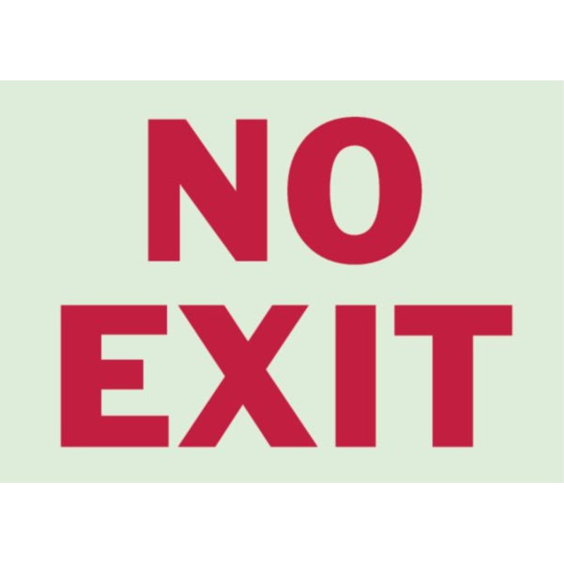 Glow-In-The Dark NO EXIT Sign, Self-Sticking, 10" x 14"