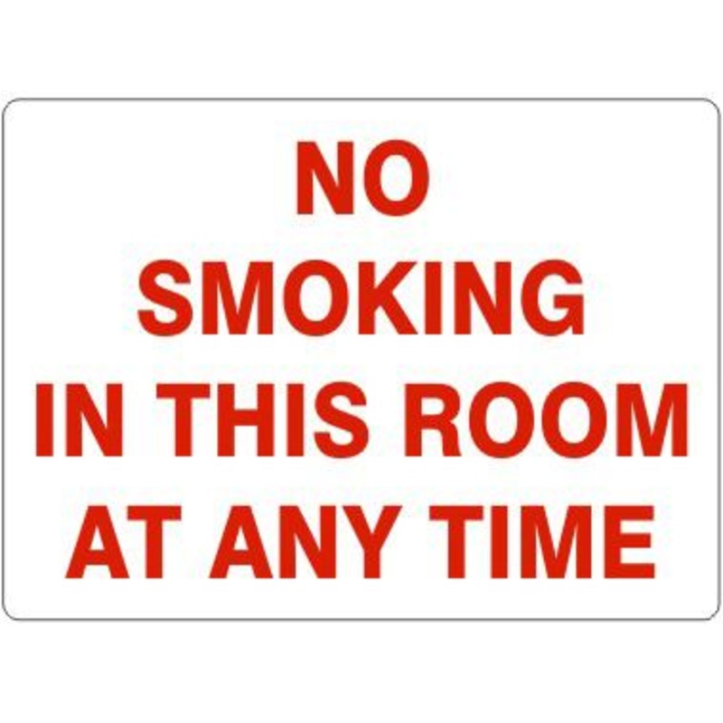 No Smoking In This Room At Any Time Label, Adhesive Vinyl, Red/White, 10x14"