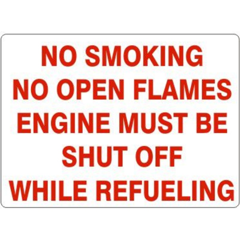 No Smoking No Open Flames Engine Must Be Shut Off While Refueling Sign, Fiberglass, Red/White, 7×10″