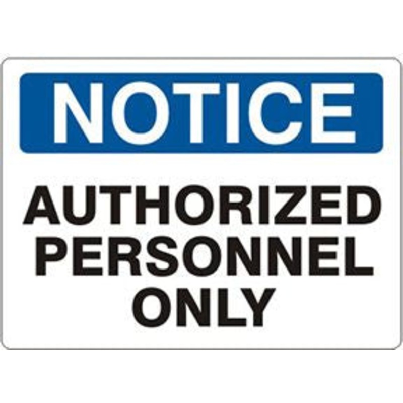 Notice Authorized Personnel Only Sign, Aluminum .040, Black/White/Blue, 10x14\