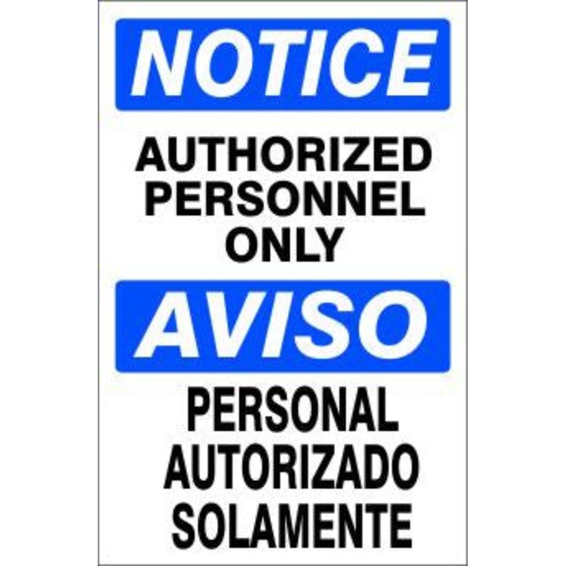 Notice Authorized Personnel Only Sign, Plastic .040, Black/Blue/White, 14×10\