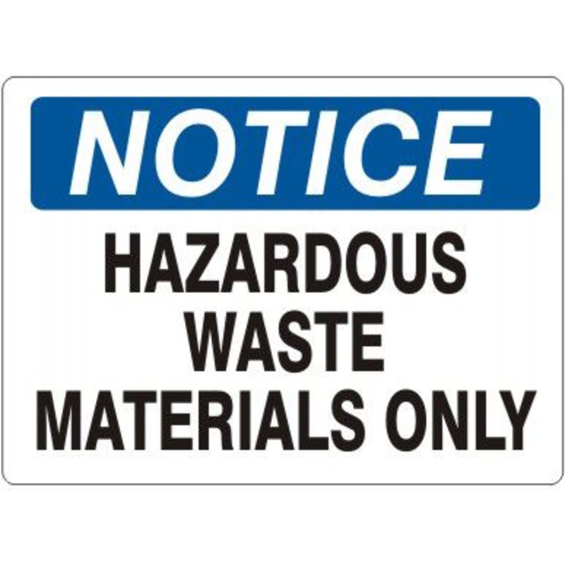 Notice Hazardous Waste Materials Only Sign, Fiberglass, Black/Blue/White, 10×14″