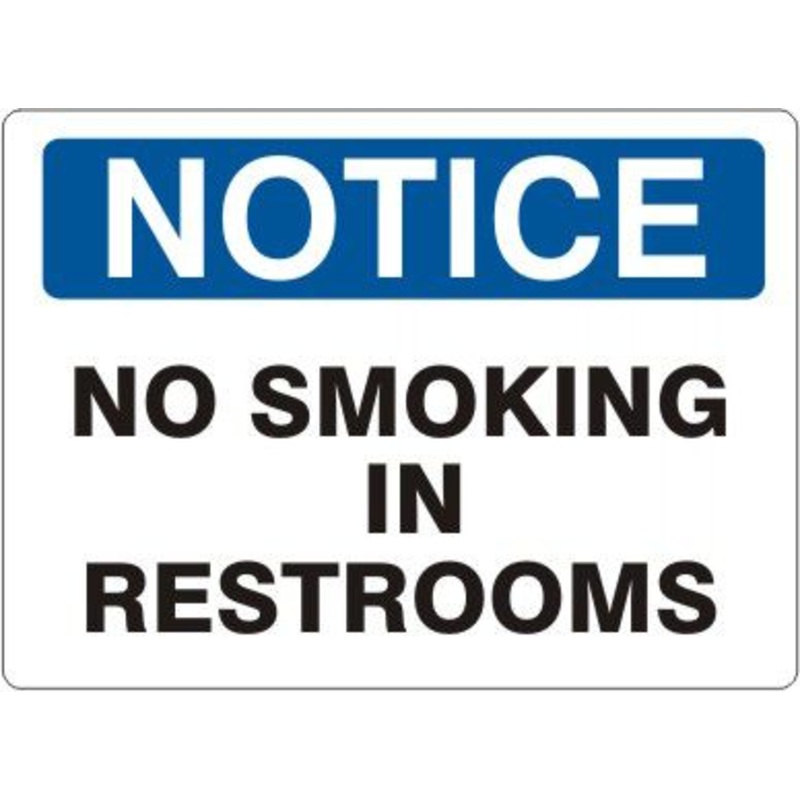 Notice No Smoking In Restrooms Sign, Aluminum .040, Black/Blue/White, 7x10\