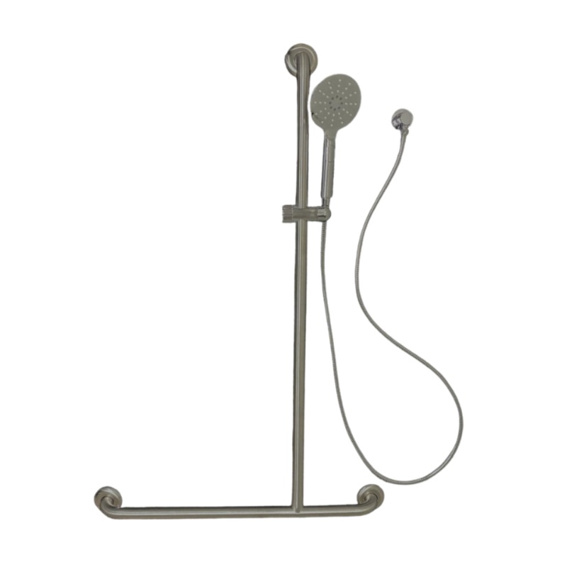 SpecificationMaterial#304 Stainless Steel grab rail, chrome/grey hand shower, chrome 2.0m high pressure hose, Chrome Elbow and Grab Slider.MountingConcealed Fix - 78mm MountFinishSatin Stainless SteelDimensionsGrab Rail 1100mm X 700mm, 32mm Shower KitFeatu