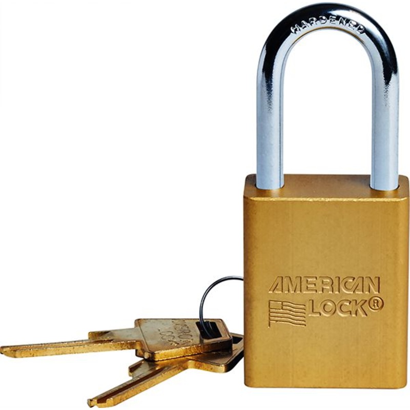 Color-Coded Keyed Padlock, Gold, 1-1/2″ Aluminum Body, 1/4″ Boron Shackle, 3/4″ Horizontal Clearance, 3/4″ Vertical Clearance