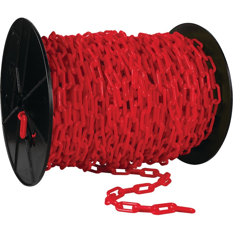 Plastic Barrier Chain with Reel, 1-1/2" x 300', Red Finish