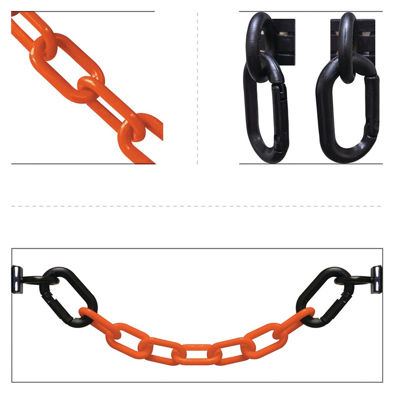 Plastic Chain 15′ with magnet ring/carabiners Safety Orange