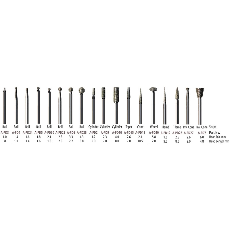 A-PD10 Cylinder, A-PD11 Cone, A-PD12 Flame, A-PD15 Taper, A-PD2 Cylinder, A-PD20 Wheel, A-PD22 Flame, A-PD24 Ball, A-PD25 Ball, A-PD26 Ball, A-PD27 Inv. Cone, A-PD3 Ball, A-PD30 Ball, A-PD4 Ball, A-PD5 Ball, A-PD6 Ball, A-PD7 Inv. Cone, A-PD9 Cylinder |