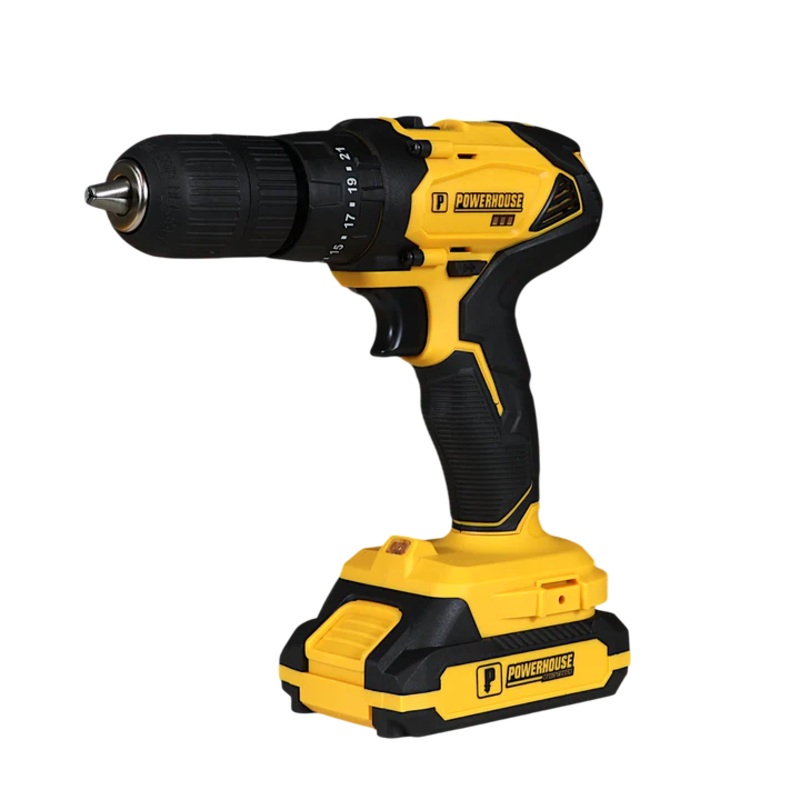 Cordless Impact Drill from the Wireless Series Power Tools. Includes a 12V battery and a 10mm drill chuck, this drill offers versatility and portability for various drilling tasks.SpecificationsRated Voltage: 20VChuck Size: 13MMMax Torque: 35 N.MBattery Ca