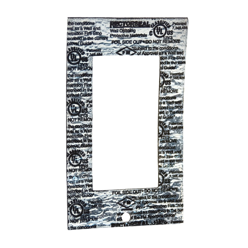PRODUCT DESCRIPTION Metacaulk Cover Guard is a 1-piece fire-rated gasket for meeting the “24-in rule” in electrical boxes. When exposed to heat, intumescent material expands/ forms a char to seal opening, prevent flame spread, and limit heat transfer to unexposed area. Mounted on inside of cover plate and installed simultaneously; covers the opening and provides fire protection. Applied by hand and saves space in the electrical box. Cover Guard fire-rated gaskets are cost effective and save time and money when needing to install fire sealant to electrical applications. Cover Guard Fire Sealant gasket; use when electrical boxes are installed in rated walls facing opposite directions and horizontally separated by less than 24″. Can also be used as a solution for standard electrical boxes when the 100 square inch rule is violated. FOR THE TRADESMAN: RectorSeal is recognized as a leading provider of quality solutions for the professional trades serving heating, ventilation, and air conditioning (HVAC/R), plumbing, electrical, and construction markets. FROM THE MANUFACTURER Metacaulk Cover Guard fits under the cover plate and does not take up volume in the electrical box. It is a labor saving replacement for putty pads in normal applications. STC 54 rating, Tested in a UL 411 wall assembly/section to ASTM E90. Patent Pending.