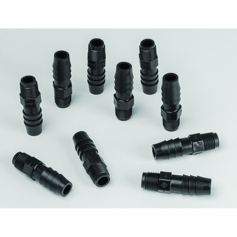 The 1/8-in MNPT x 3/8" Hose Barb fittings pack is the replacement fittings for VaporTrap Solvent Waste System's fittings. It includes (10) 1/8-in MNPT x 3/8-in hose barb fittings. These tube fittings secure waste tubes to carboy providing the closed system