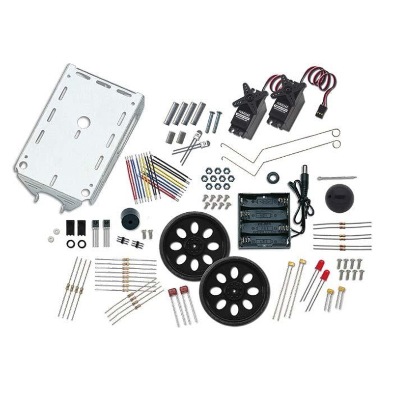 The Boe-Bot is the most popular Parallax robotics kit because it appeals to both beginners and experienced robotics designers. The Board of Education (BOE) programming board is necessary to use this product. When purchasing the Boe-Bot "full kit" version,
