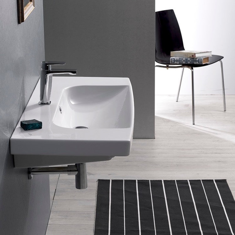 Available as a wall mounted sink, a vanity sink, or as a self-rimming sink, this rectangular white ceramic sink is perfect for your modern bathroom. Multiple faucet hole options, an included overflow, and ample counter space makes it an all-encompassing sink that fits any of your needs.