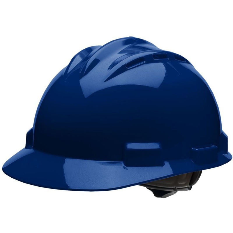 Standard Hard Hat, HDPE, Cotton Brow Pad, Cap Style, 4-Point Ratchet Suspension, Vented, Navy Blue