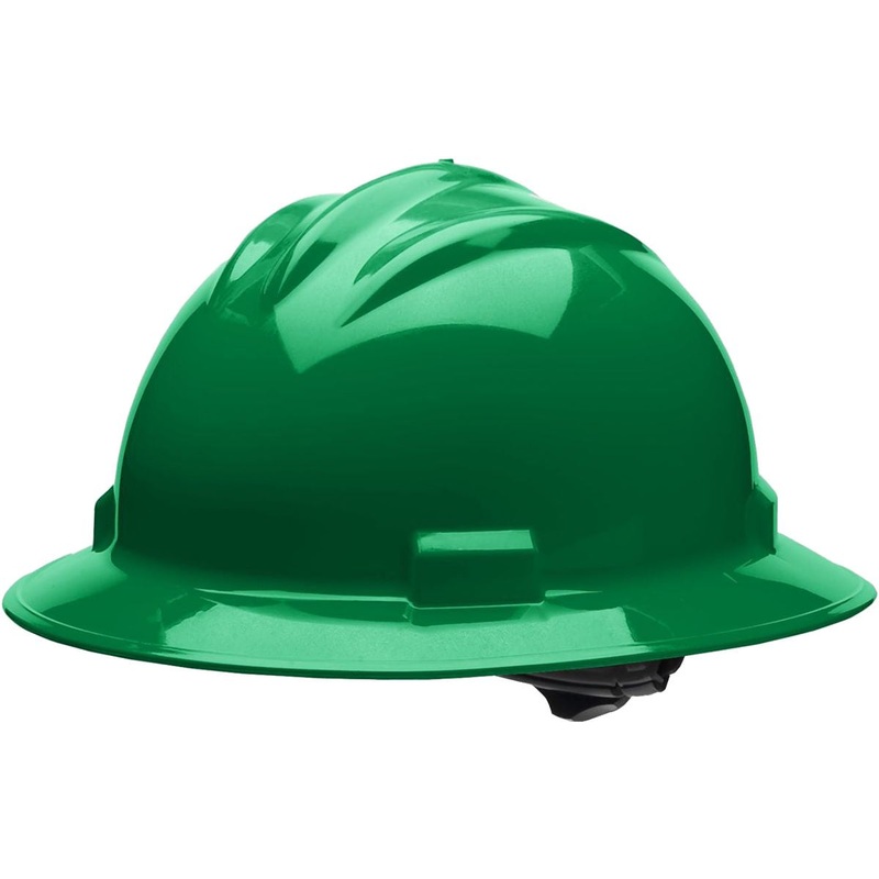 Standard Full Brim Hard Hat, HDPE, Cotton Brow Pad, 4-Point Ratchet Suspension, Vented, Kelly Green