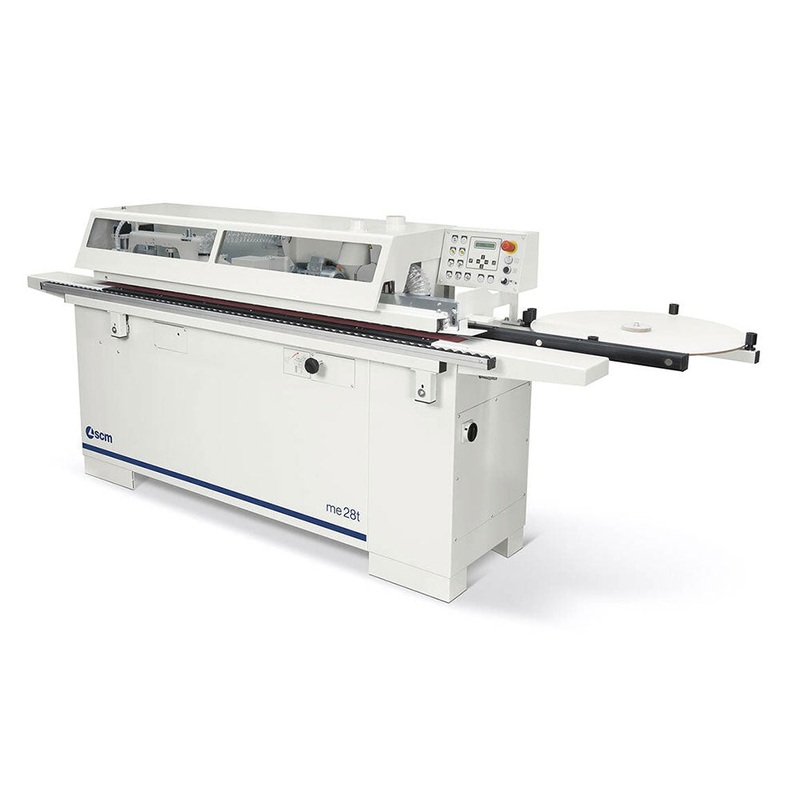 The Minimax ME 28ET is a compact machine boasting capacities usually only found on much larger units. This model comes with a single diamond pre-milling unit with chip breaker, end trimming, top and bottom trimming, scraping, buffing stations, and 3 mm edge processing (5 mm strips) standard. This machine is perfect for the small to medium sized panel processing shops, this small machine packs many features, and has a favorable price as well.