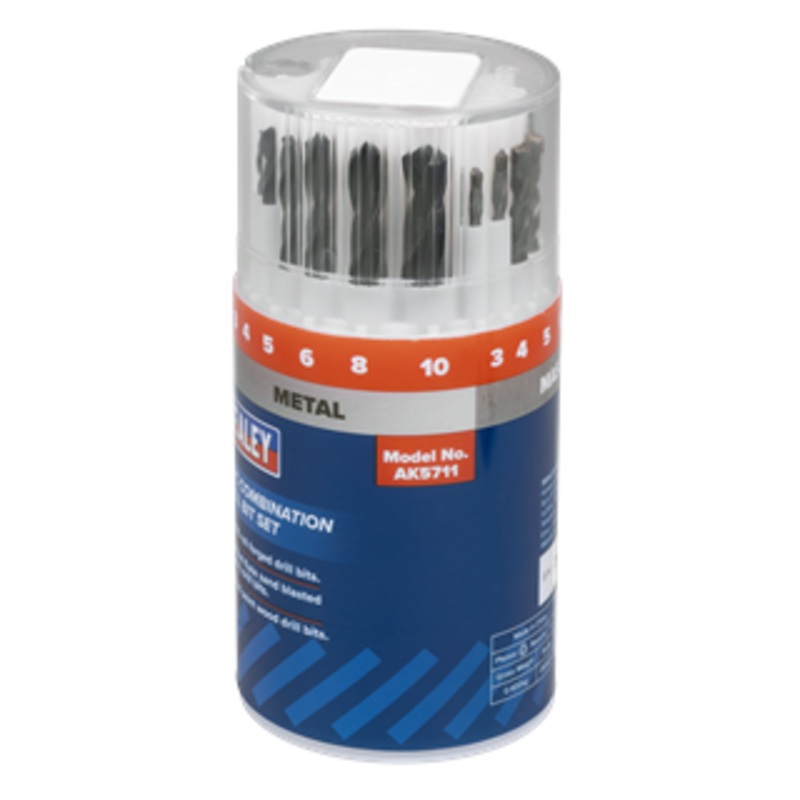For use on a variety of surfaces including steel, cast iron, wood, brick and more. Features a mixture of HSS, masonry and wood drill bits. Supplied in cylindrical plastic storage case. For use on a variety of surfaces including steel, cast iron, wood, bric