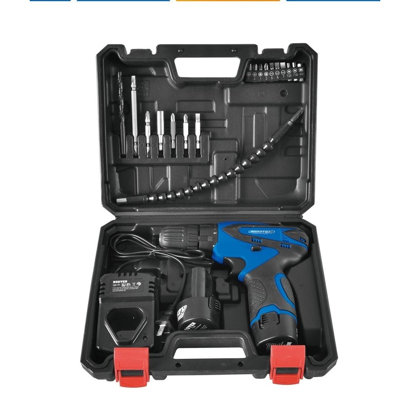 Semprox Cordless Drill Machine 12V with Accessories2 X BatteryMechanical Two Speed with 18 classes torque setting for more area useErgonomical design right for comfortable useCan be used for Black area with LED lightWith Two Batteries and one charger16pcs
