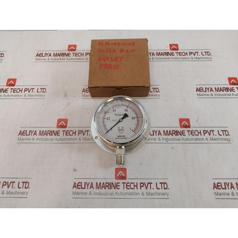 Seonjin Oil100*B Pressure Gauge 0-10 Bar 1.0Mpa 10/6K P.L.VSeonjinPressure Gauge0-1 Mpa0-10 BarCl 1.5Model: Oil100*BRange: 1.0MpaConn: Pf3/8Ks B 5305Mm-09-1-1310/6K P.L.VOutlet PressMade In KoreaWeight: 660 Gm