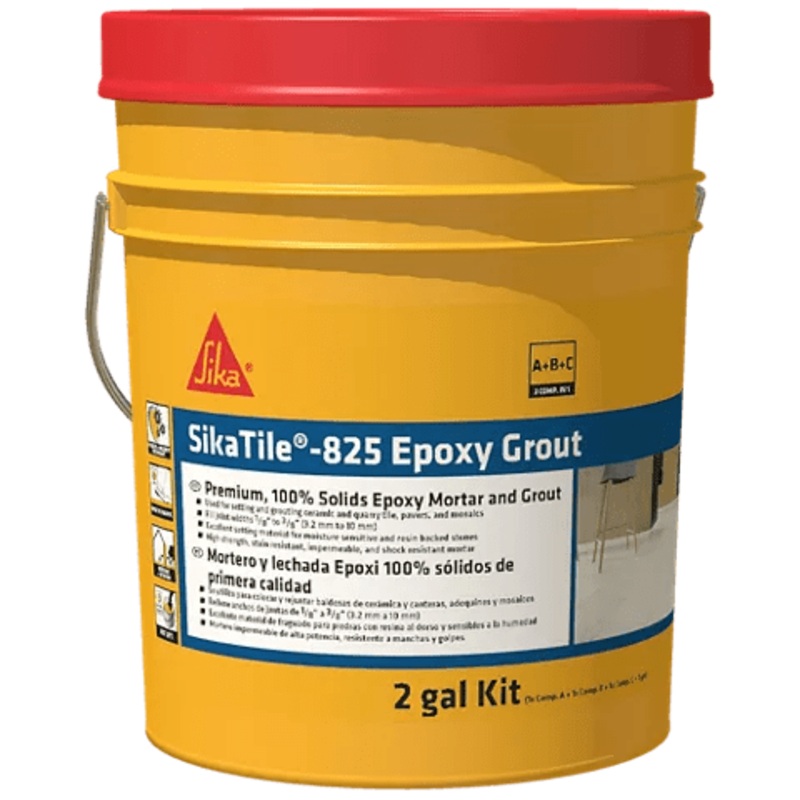 SikaTile-825 Epoxy Grout is a premium, 100% solids epoxy mortar and grout with colored quartz.It is a three-component, non-sag, non-slump epoxy grout and mortar designed for joints from 1/16" (1.5 mm) up to 3/8" (10 mm) in width. It is water-cleanable, eas