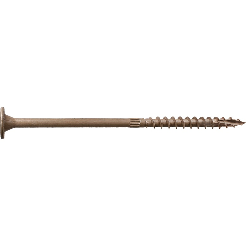 These screws are designed to be an easy-to-install, high-strength alternative to through-bolting and traditional lag screws for a wide range of fastening applications. Bold thread design provides superior holding power. Patented 4CUT tip to ensure fast start, and reduced installation torque eliminating pre-drilling in most applications. Large head provides maximum bearing area. Double-Barrier coating makes screw suitable for exterior and preservative-treated wood applications. Deep 6-lobe Star Drive reduces cam-out, making driving easier. Low-profile head design provides a clean look and less interference after installation. Installs best with a low-speed 1/2″ drill motor with a T-40 bit (bit included in each package). Screw diameter 0.220″ with deep 6-lobe drive.