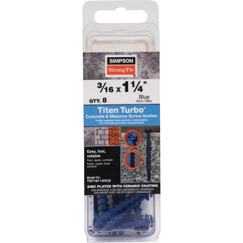 Simpson Strong-Tie Titen Turbo 3/16 In. x 1-3/4 In. Hex-Head Concrete and Masonry Screw, Blue (8-Qty)