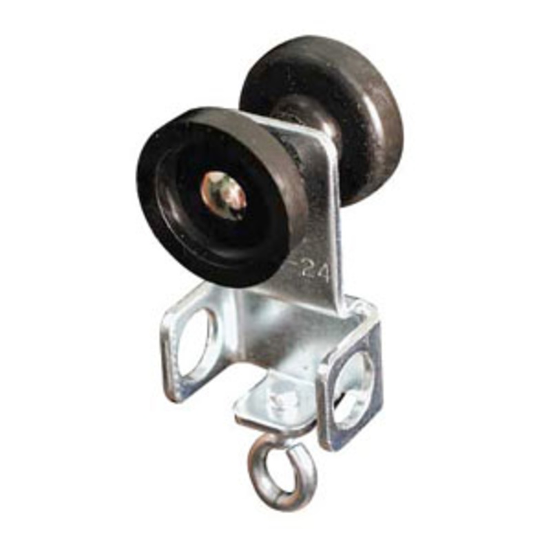 Carrier spacing: 12″. Block constructed of plated steel with 2 polyethylene wheels. Plated swivel for free, effortless curtain movement.Carrier width: Approximately 1-3/16″.