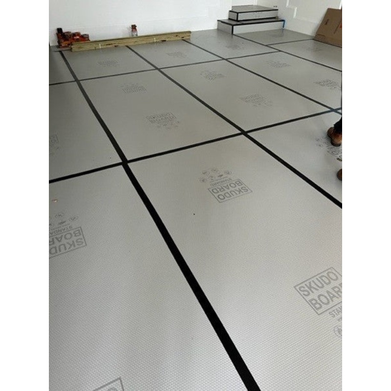 SkudoBoard should not be used on freshly placed concrete unless that concrete will be later covered with another finishing product, such as tile, carpet, LVT, etc. Using SkudoBoard on uncured concrete can lead to curing lines where the boards are joined.
