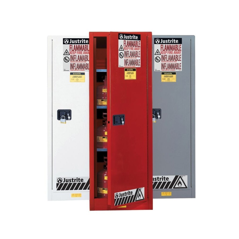 Justrite Slimline Safety Cabinets are FM-approved and carry a ten-year warranty, ensuring peace of mind and reliable performance. By configuring your cabinet, you ensure a safe and compliant storage solution tailored to your unique needs.