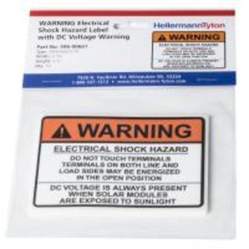 Solar Label, WARNING ELECTRICAL SHOCK HAZARDDC VOLTAGE, 3.75" x 2.5", V, Orange, 10/pkgMaterial: VinylColor: OrangeLength: 3 3/4 inColor: White