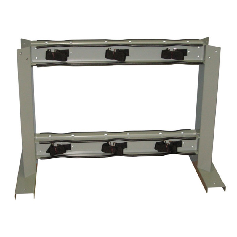 Two heavy-duty polypropylene support straps, 1.5- x 54-in (38-mm x 1372-mm) and rated at 1138-lb (516-kg), feature steel cinch buckle and hold individual cylinders securely against integral bracket. For an improved level of safety for any installation, all brackets include openings to retrofit secondary support chains, one set for each cylinder strap location.